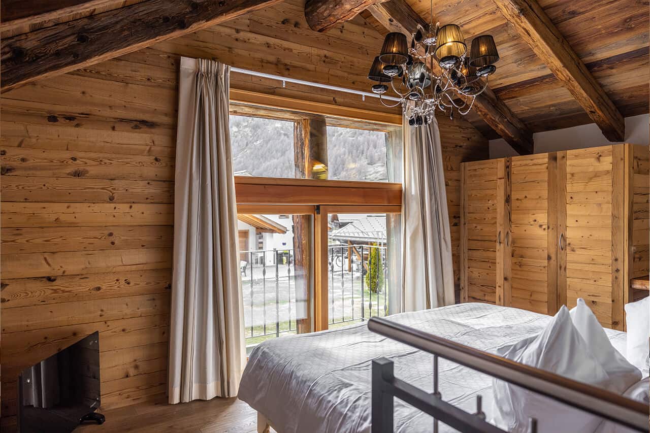 Avec 32m2 de bien-être, cette chambre est appréciée des couples ou des petites familles avec un enfant. Les chambres se trouvent dans la maison Zeus au rez-de-chaussée. La grande terrasse donne une vue magnifique sur le Cervin.